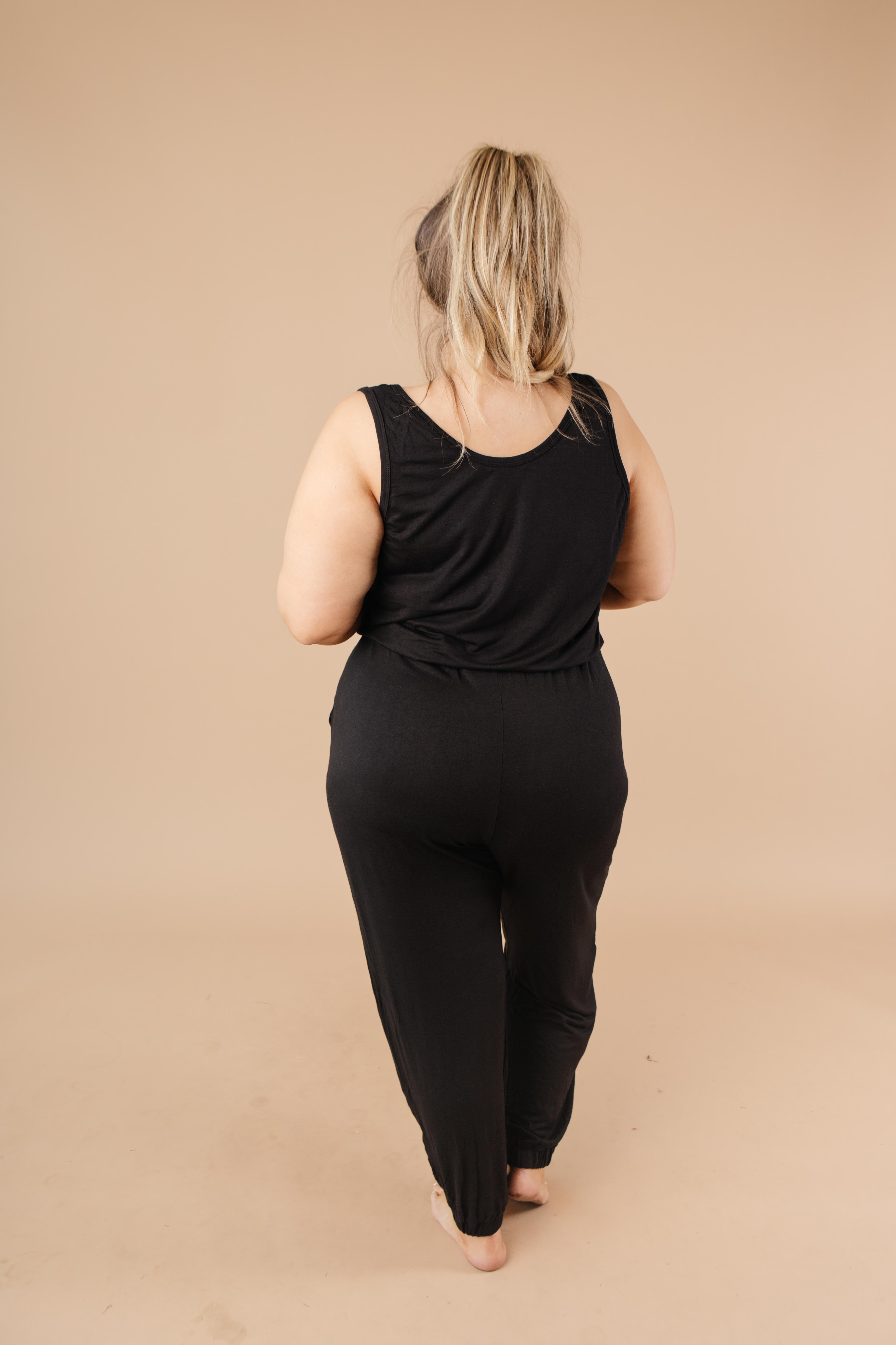 Every lady needs a power jumpsuit! It'll change your whole life. This piece is effortlessly trendy, and will take you from day to night with ease! It's sleeveless which is perfect for layering and pairing to your heart's content! It also features an elastic waist with an adjustable tie, pockets, and a jogger style hem!